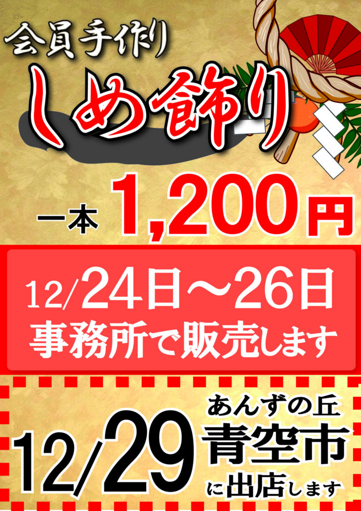 今年もシルバー人材センターの会員が心を込めて手作りした「しめ縄」を販売いたします。